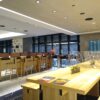 ロビーもすごく広々として、木のナチュラルさとグレーのシックさが混じりあっていい感じ