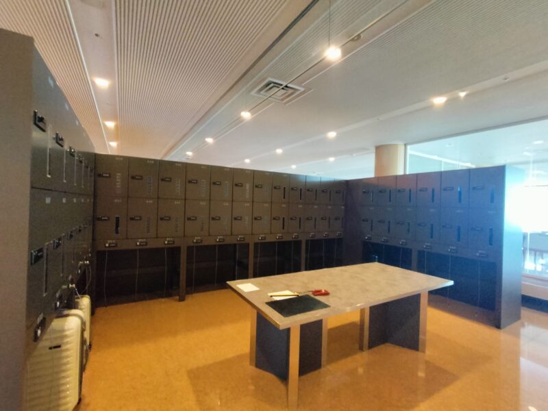 フロントの向かいにセルフ式の無料バゲージロッカーがありました