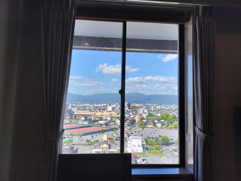 大きな窓が2つあって、長浜の市街地と山を見渡せます😍