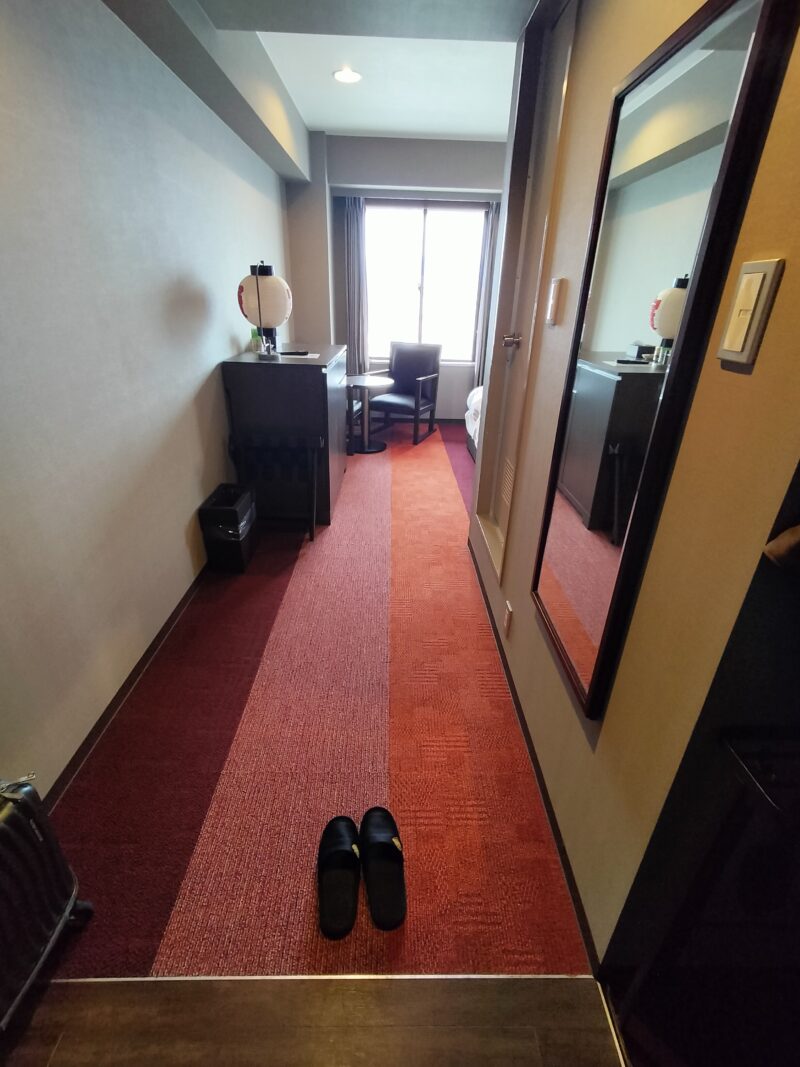 入口ドアを開けたら見える景色がこちら↓↓少し廊下になっていて、ベッドが見えないのもいいですね🥰