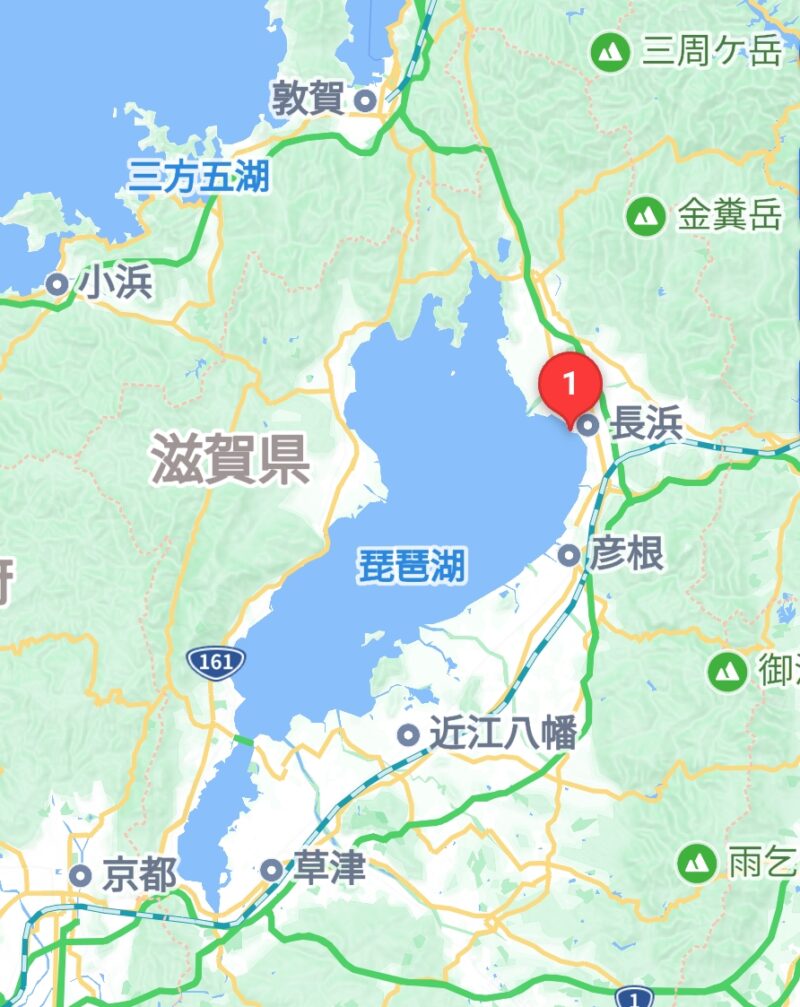 公共交通機関なら、JR,長浜駅からは歩いて10分ほどですが