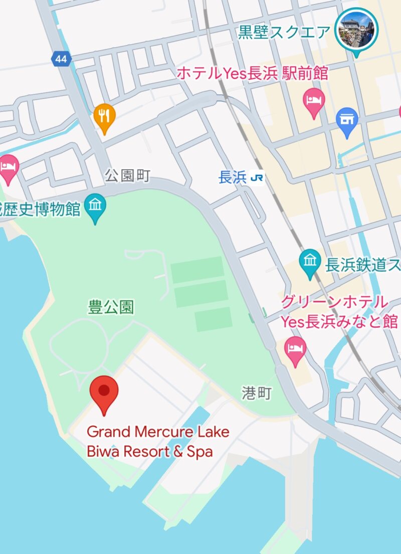 こちらのホテルは琵琶湖の上の方、長浜駅の近くにあります