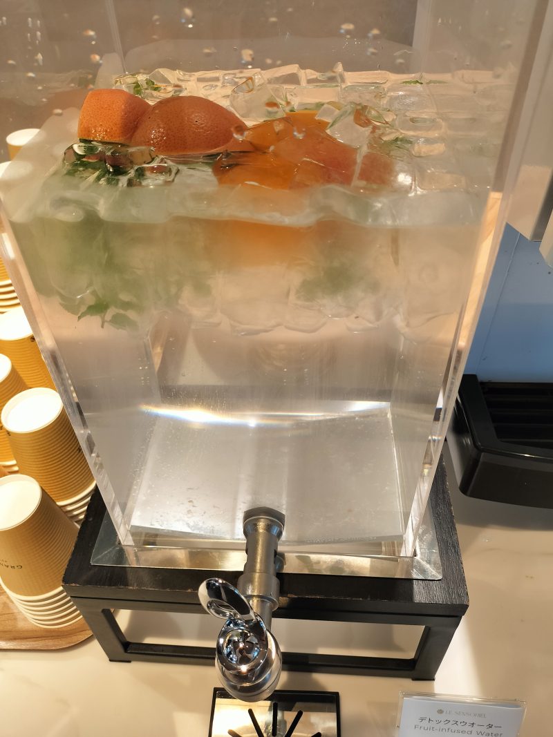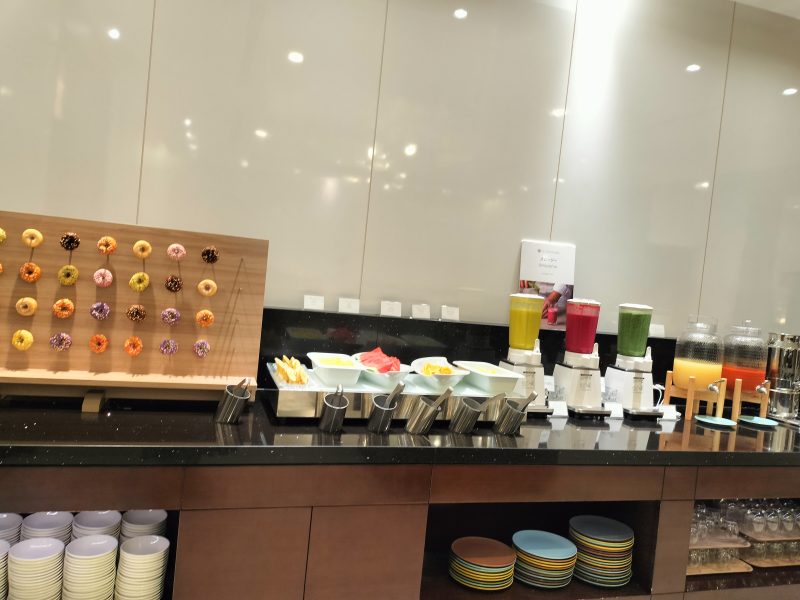 ラウンジではアルコールやおつまみ、お菓子など気兼ね無く無料で楽しめて