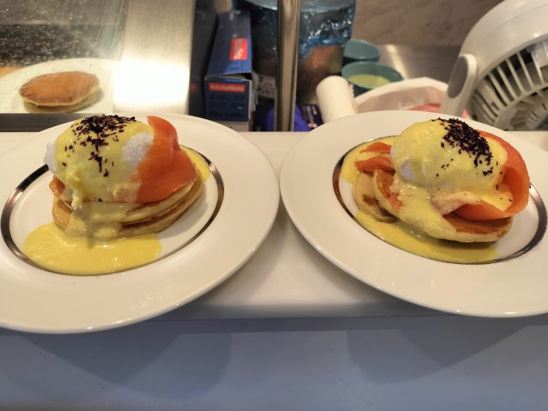 ライブキッチンではホットケーキや、サーモンのエッグベネディクト的なものも作ってくれます😍