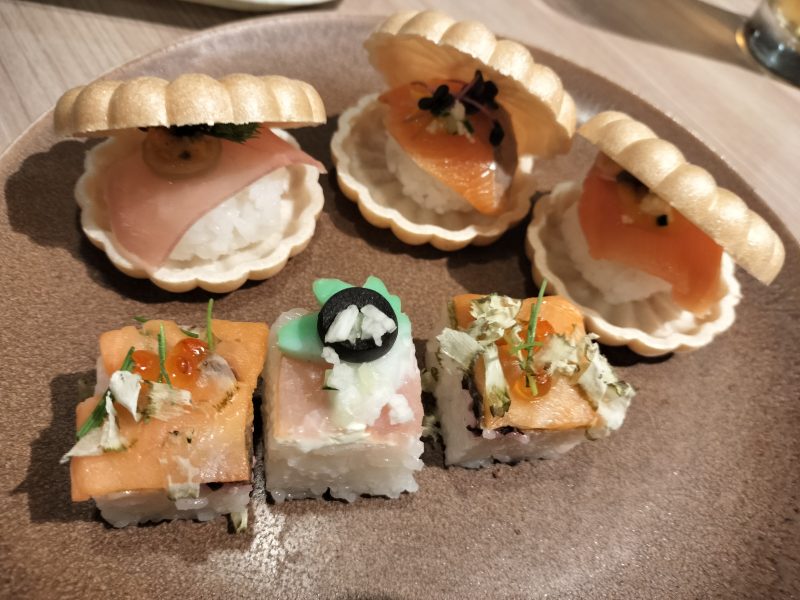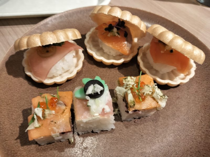 ↑↑モナカに挟まれたお寿司とか、サーモンの変わり寿司も洋風だけど美味しかった😊