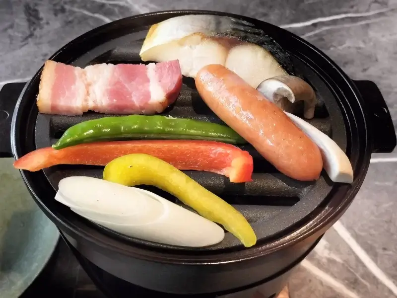 スタッフが火🔥をつけてくれたコンロで焼いていきます