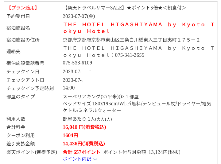 今回は楽天トラベルで予約👍