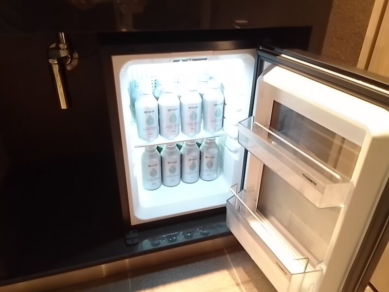 冷蔵庫は立派な洗面台の下にあります