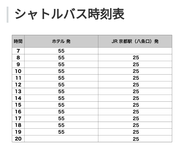 話がそれてしまいましたがシャトルバスの時刻表は↓↓こんな感じです
