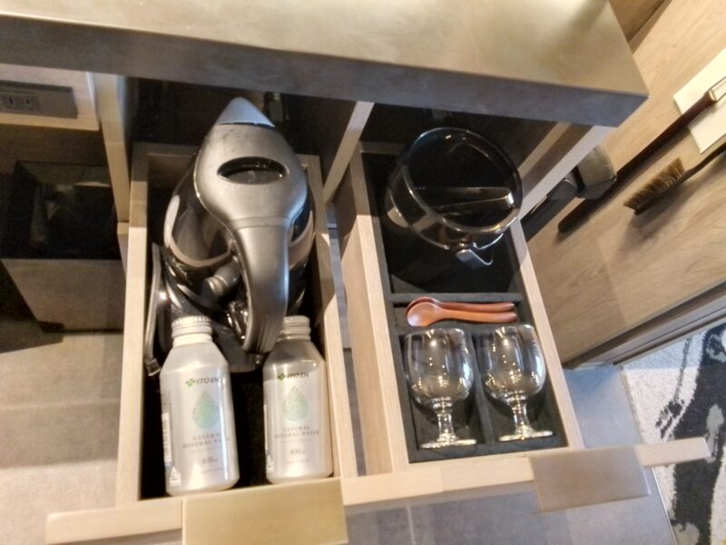 冷蔵庫はカラでしたが、引き出しに無料のお水がありました