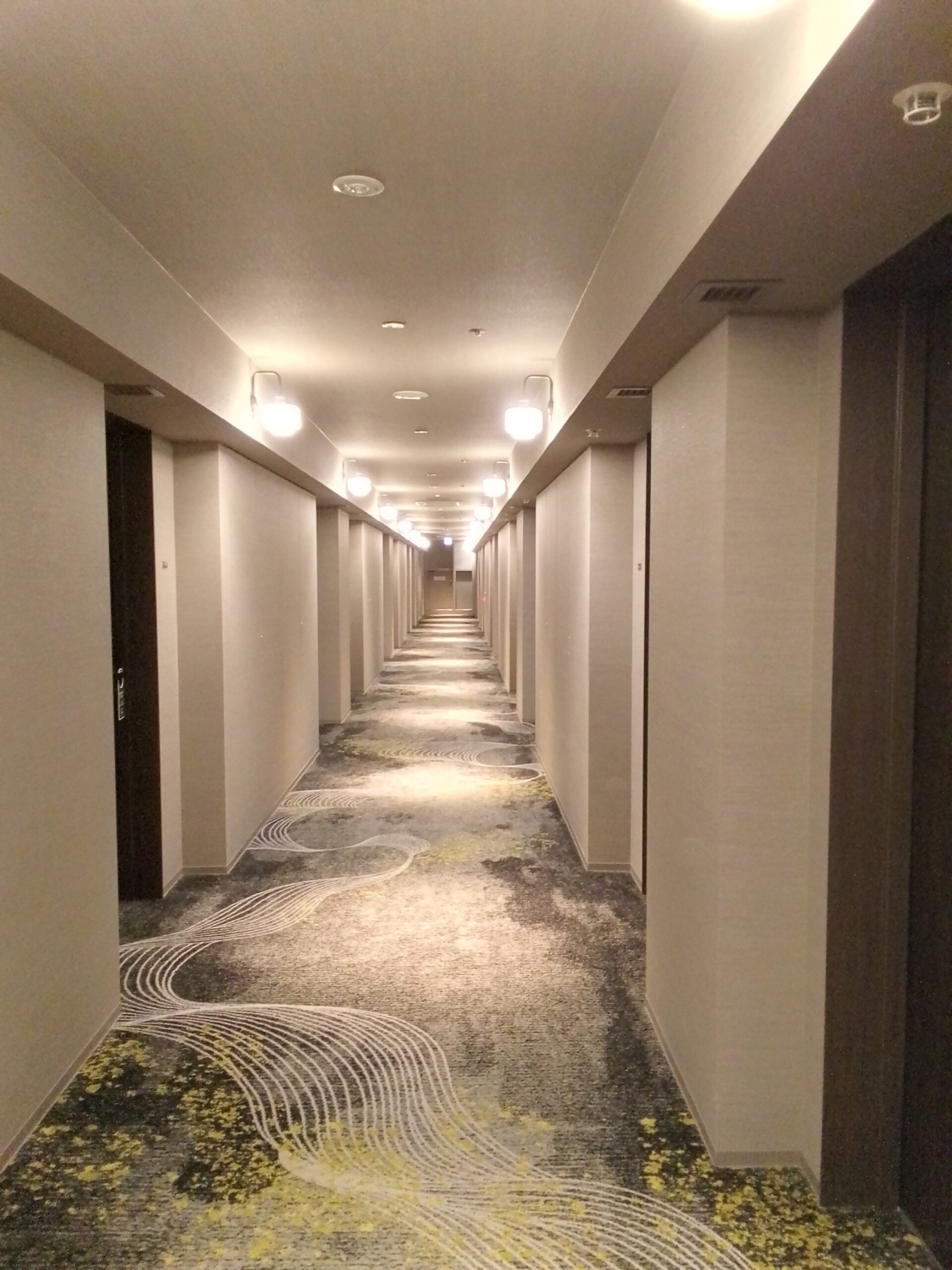 エレベーターからの廊下なんかも流水紋が美しい絨毯で