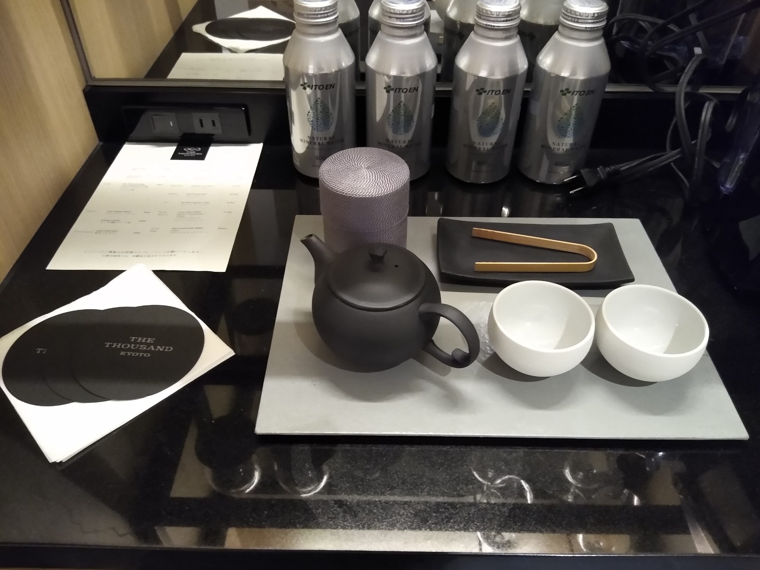 黒豆茶とレモン水を置いてくれています☺️至れり尽くせりだな…