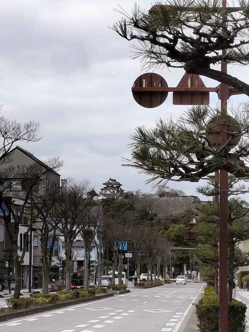 JR彦根駅からは平坦な道で、松が植えられた綺麗な歩道沿いには飲食店がたくさんあります