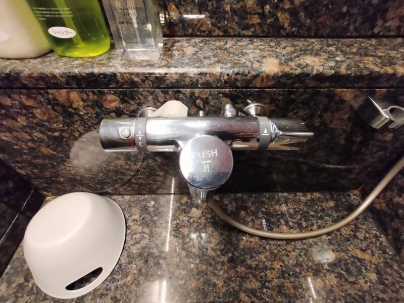 ホテルの大浴場は浴槽の後ろに洗い場があるところが多く、結構な頻度でシャワーかかるんですよね〜😢