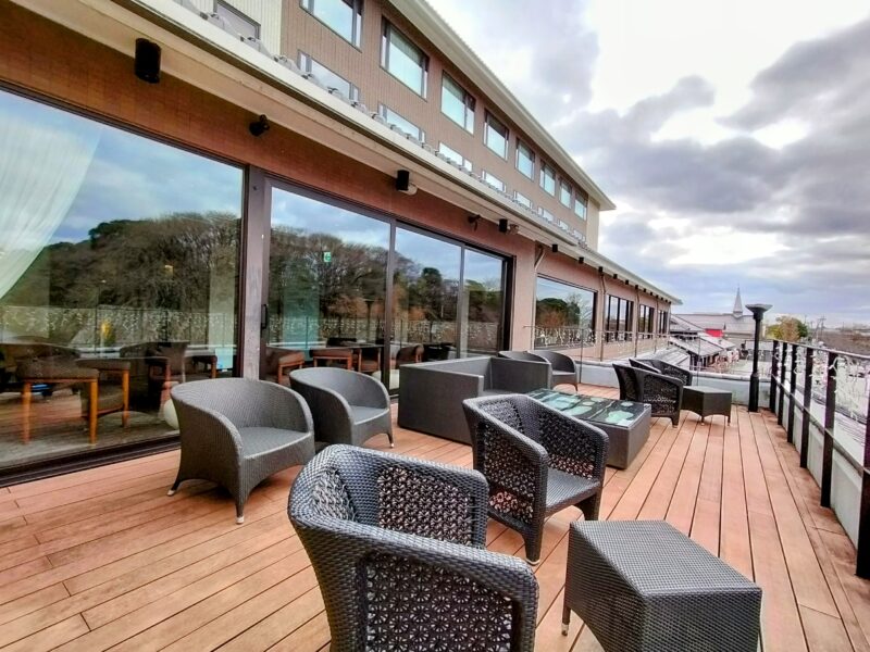 テーブルに電源はありませんがお願いすると延長コードを貸してくれるそうで、Wi-Fiも結構な強さで飛んでいるのでお城を眺めながらのコワーキングなんて素敵…