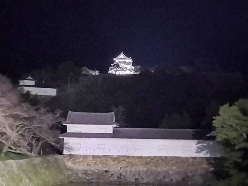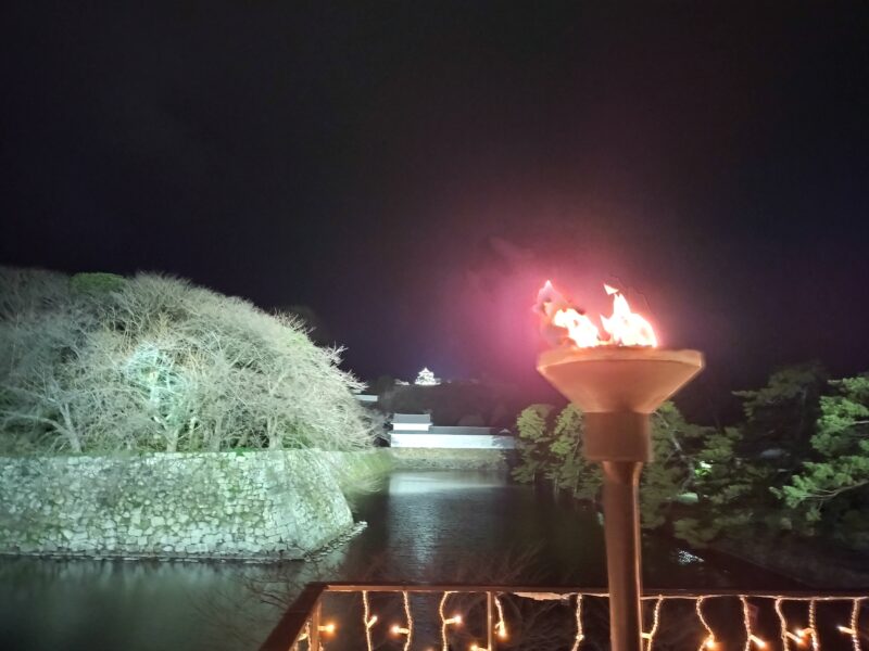 こんな感じに現代にライトアップされたお城と白く浮かび上がる城壁やお堀も眺められます😍