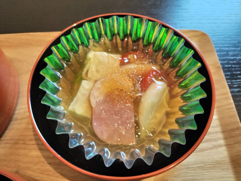 ご飯と白味噌のお味噌汁は熱々でしたが、他はすべて冷たいおかずなのでそれはちょっと残念…