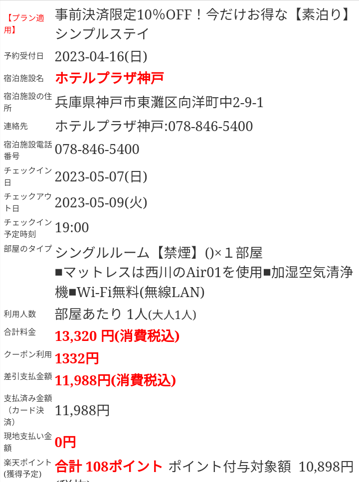 でも、楽天トラベルの事前決済限定プランで10%引き