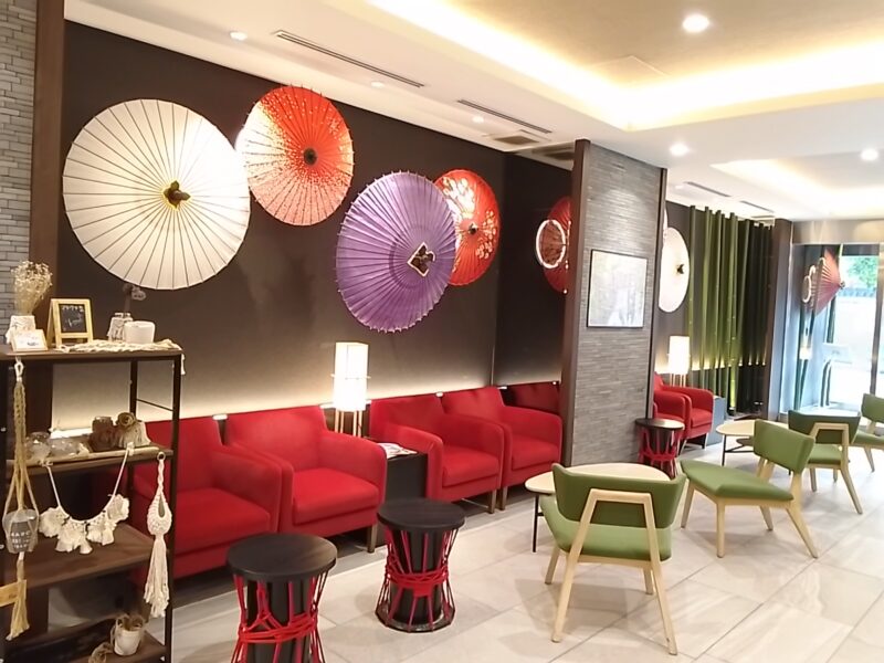 インバウンド対応のホテルだからか「和」な飾りや作品があちらこちらにありました