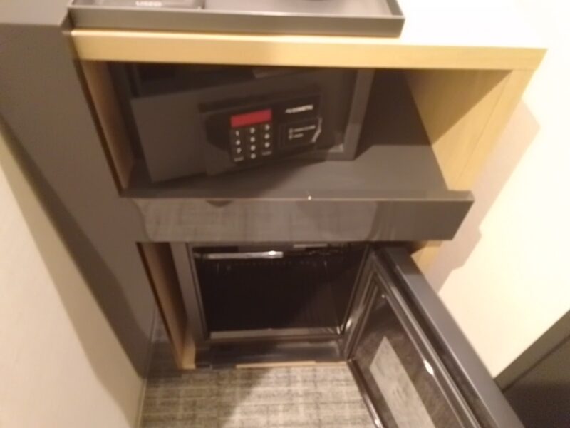 入り口すぐ横にミニバーと冷蔵庫と金庫