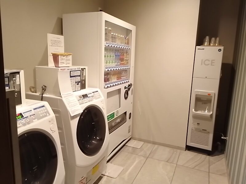 コインランドリーや自販機、製氷機は1階フロント奥にあります