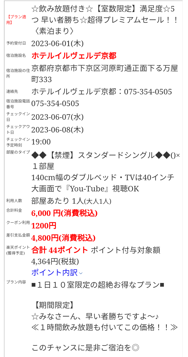 いつも楽天トラベルや一休、ヤフートラベル、ソニー損保のクラブオフなどで