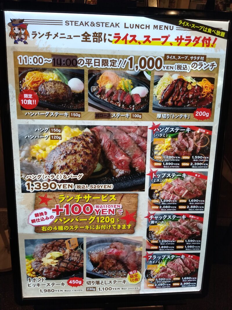 ハンバーグとステーキのセット(スープ、サラダ、ライス付き)