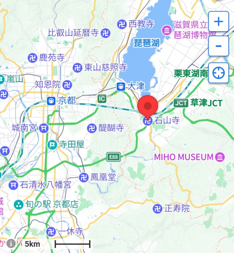 石山寺はびわ湖の一番下辺り、京都からもとても近い位置にあります