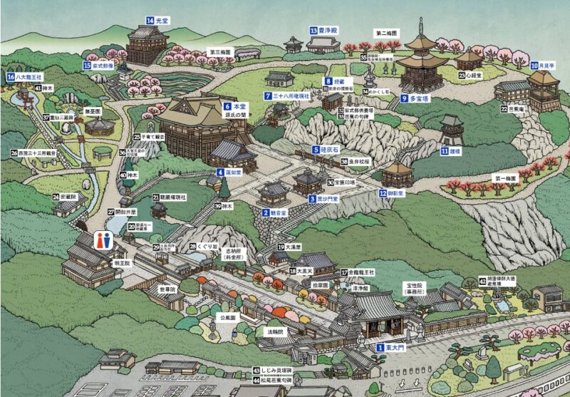 本堂の端、外を見下ろせるところに木製のベンチがあるのでそこからの景色をぜひ堪能していただきたい!
