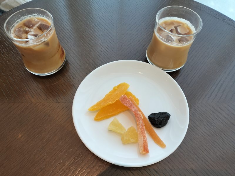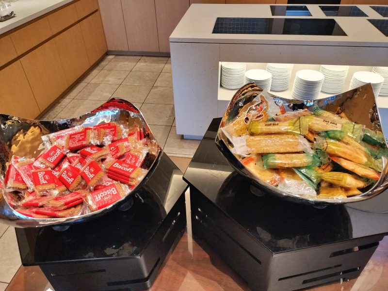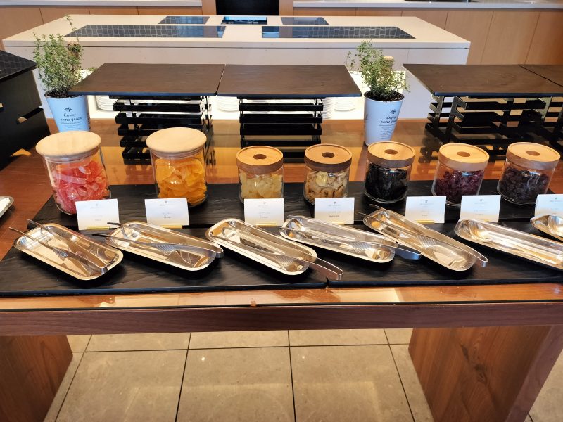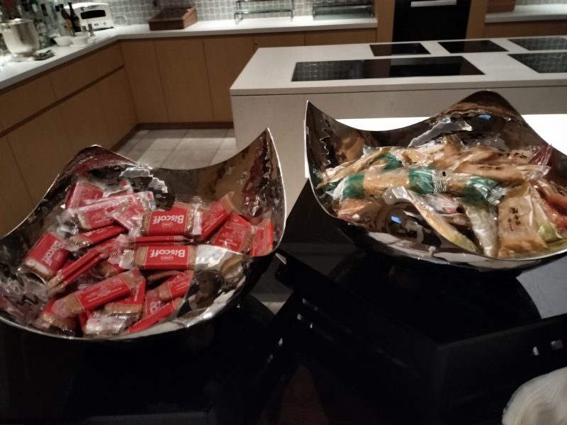 ちょっとしたお菓子などは6:30〜22:00まではずっと提供されていて、夕食前の前菜の時間帯以外は自由に利用することができます