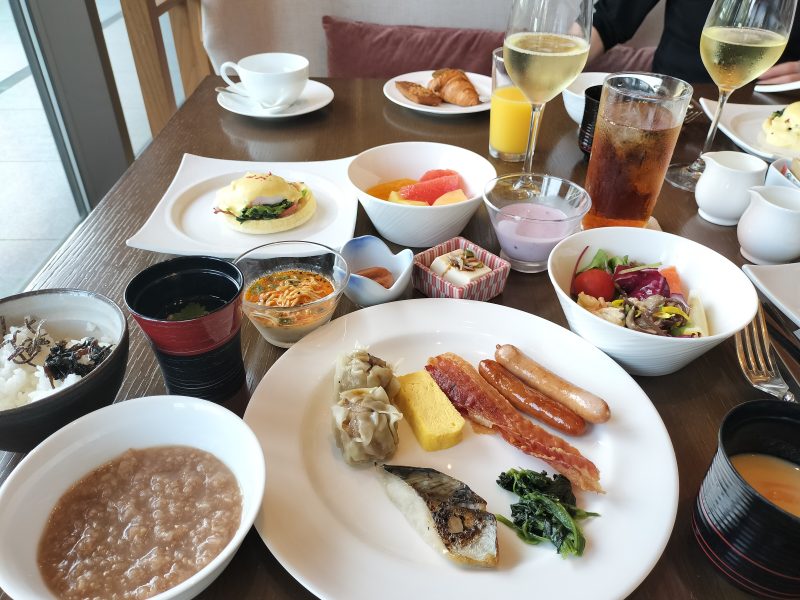 今回はポイント利用の無料宿泊だったので本来は朝食はついていないんですが、なんとエグゼクティブフロアに宿泊するとフードプレゼンテーションの中に含まれているので一人5,200円も無料になります😮3人で15,000円ちょっと…😮