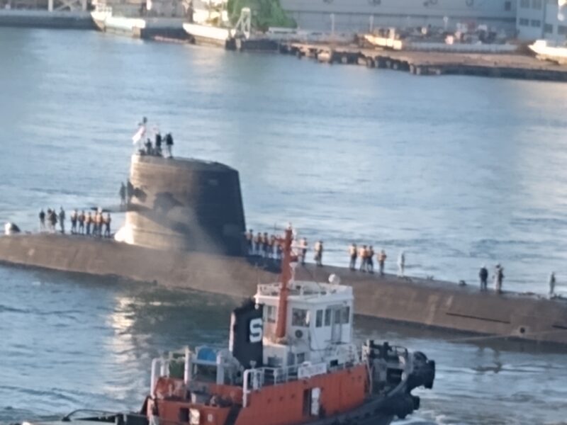 向かいの川崎重工によく潜水艦が泊まっているのはみるんですが、こんなふうに進水式を見られたのは初めてです