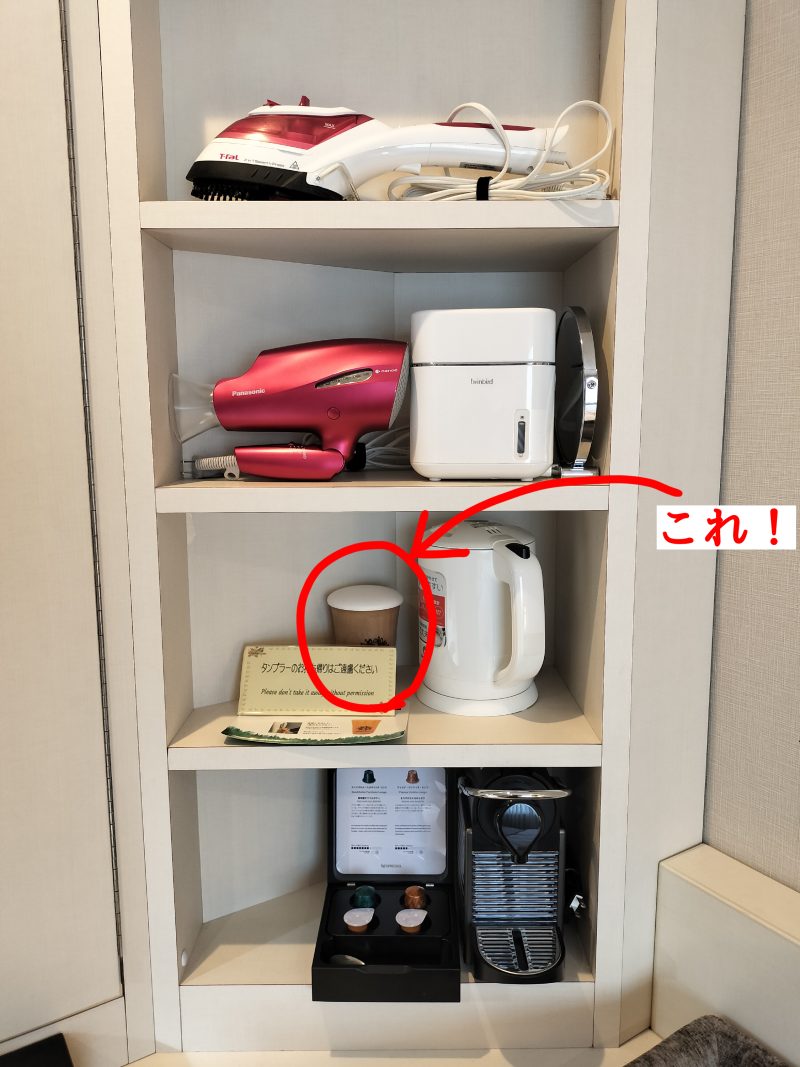 お部屋にタンブラーが置いてあるので、自由にお水を汲んでいただくことができます