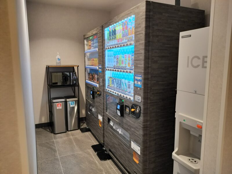 自動販売機と製氷機、電子レンジは1階エレベータ前にあります