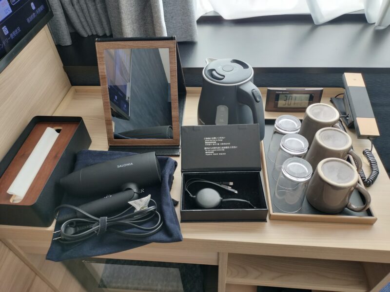 卓上の鏡と充電コードがあるのは嬉しいですね😊
