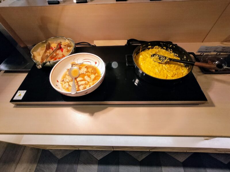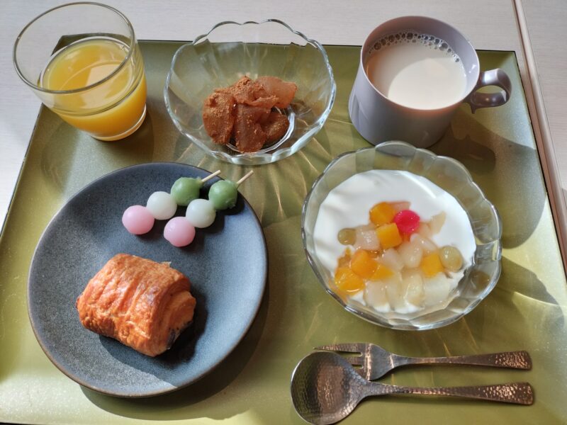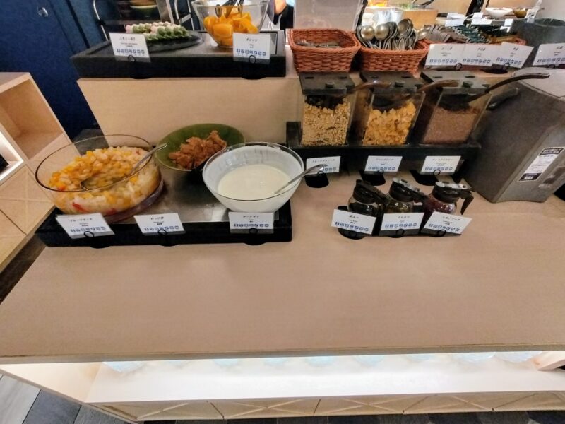 ラウンジ入り口にスタッフがいるので朝食券を渡し、トレーセットを受け取ります
