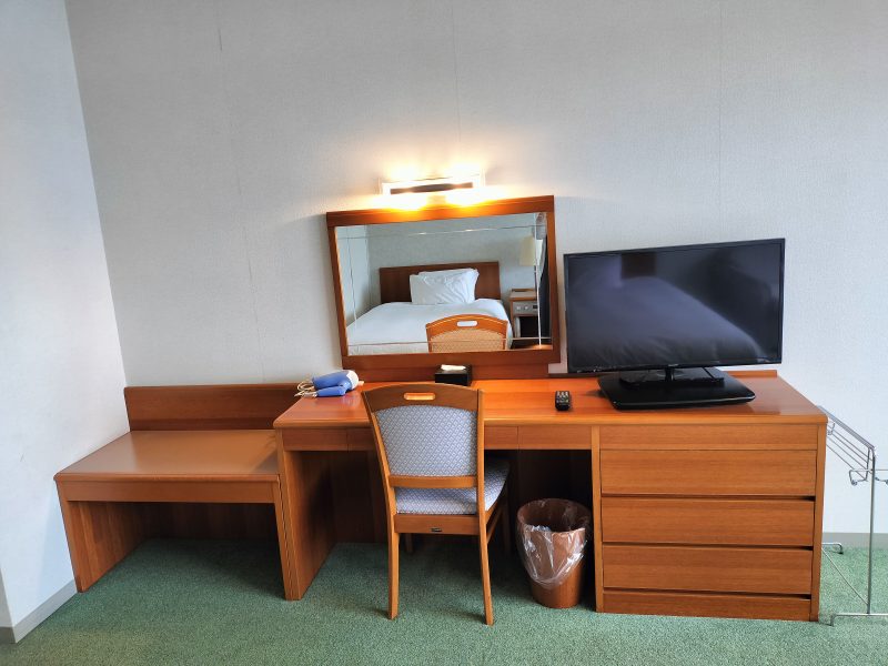 ベッドの向かいにはデスクやバゲージラック、テレビなど