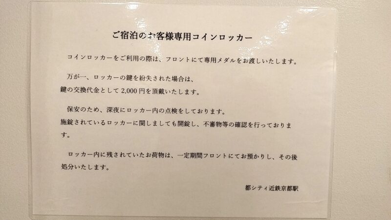 京都駅近辺のロッカーは一番小さくて400円、大きいロッカーだと800円とかなので