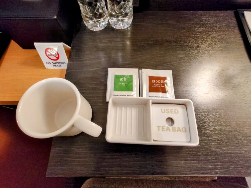 ドリンク類は無料のお水と緑茶とほうじ茶