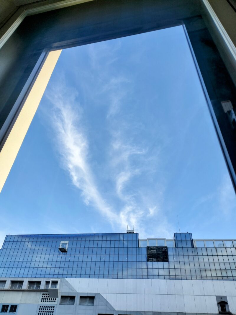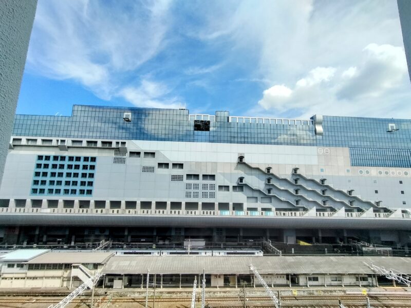 その窓から見えるのは向かいの京都駅と伊勢丹と広い空…