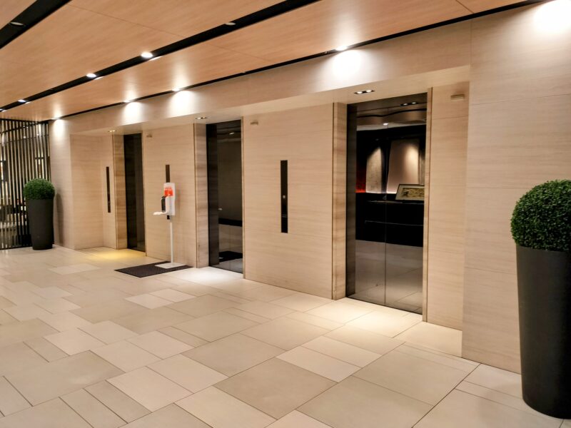 エレベーター内の階層ボタンの下にセキュリティースキャンがあるので