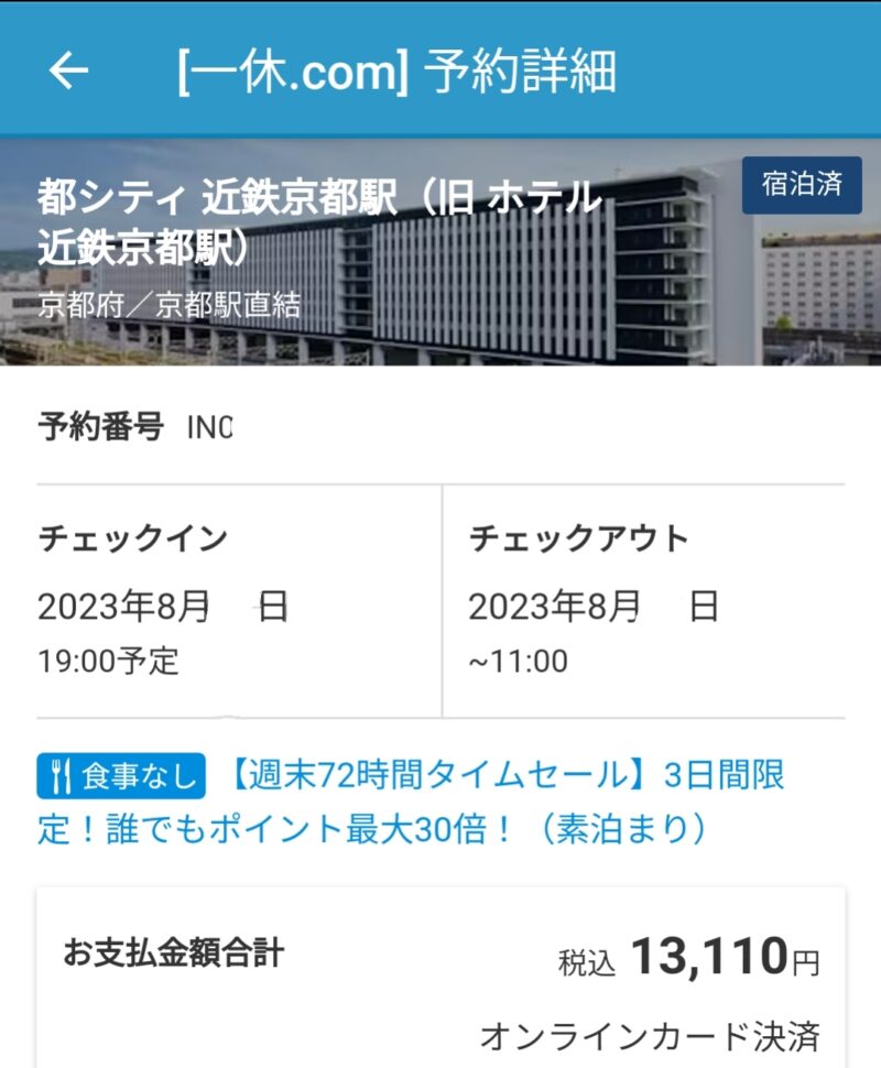 京都の駅ナカのホテルでひとり二泊でこのお値段…