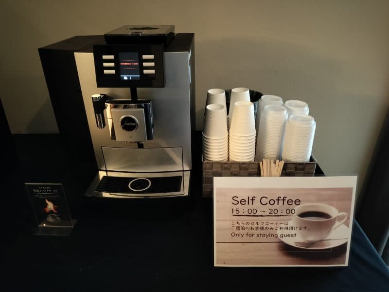 フロントの向かいにはちょっと休憩できるスペースがあり、セルフコーヒーもあります✨