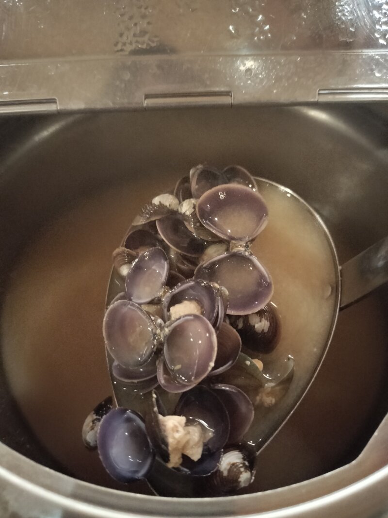 シジミのお味噌汁は軽くすくっただけで、シジミがたくさんおたまに乗ります😮
