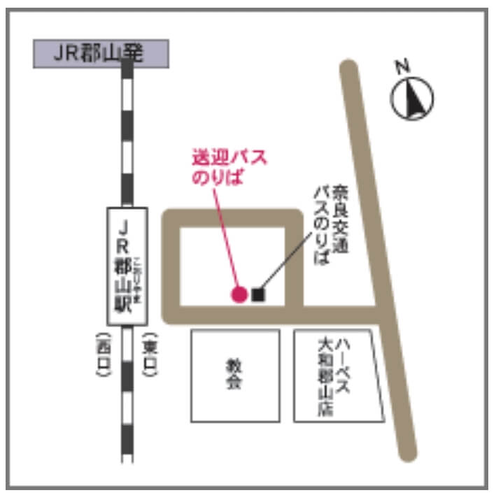 JR「郡山駅」➡近鉄「平端駅」➡奈良プラザホテル➡隣の奈良健康ランド➡JR「郡山駅」