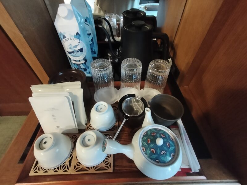 ネスプレッソは無いけど、美味しいお茶やホテルオリジナルのドリップコーヒーがありました