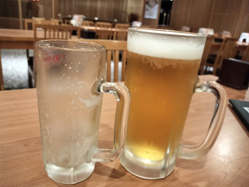左は中ジョッキ(750円)、右が大ジョッキ(1,100円)