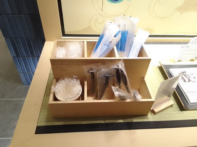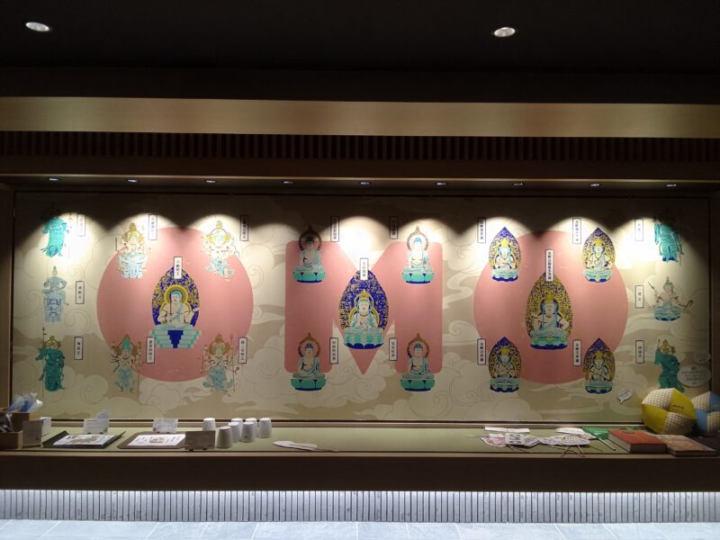 アメニティはフロント横の曼荼羅の足元に置いてあるものをピックアップしてきます