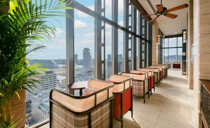 窓に向かってチェアが並んでいるので、朝方や夜遅くにのんびりと景色を眺めるのにも最適✨