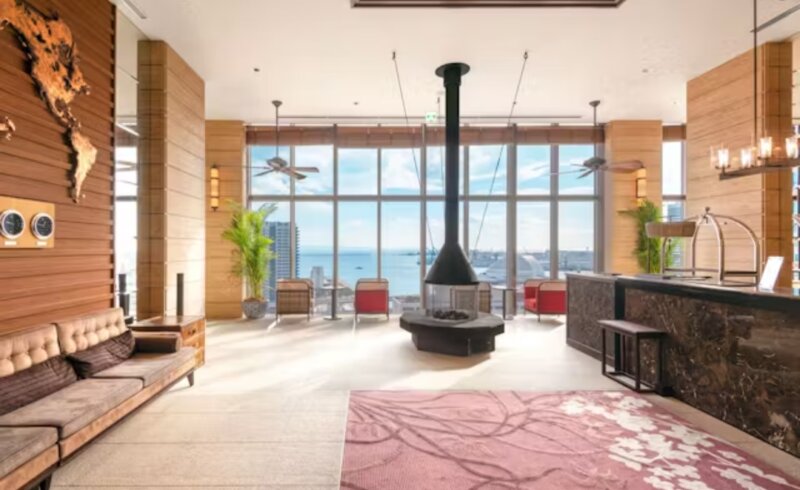 とにかく天井が高くて一面の大きな窓からの眺望とあいまって解放感抜群✨